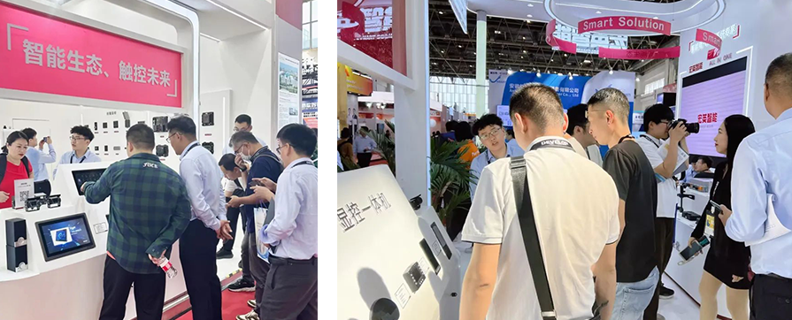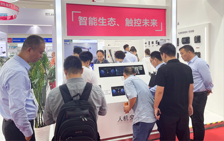 此外最為搶眼的還得數(shù)人機交互區(qū)域,最新的智能座艙系列產(chǎn)品、顯控一體機等設備,吸引眾多客戶駐足體驗互動,設備不僅可實現(xiàn)上電即用,并且環(huán)境可靠性高,適用于各種惡劣環(huán)境,再配合智能按鍵面板以及電源管理模塊,可拓展更多用戶自定義功能,為客戶量身打造多元化的智能座艙場景。